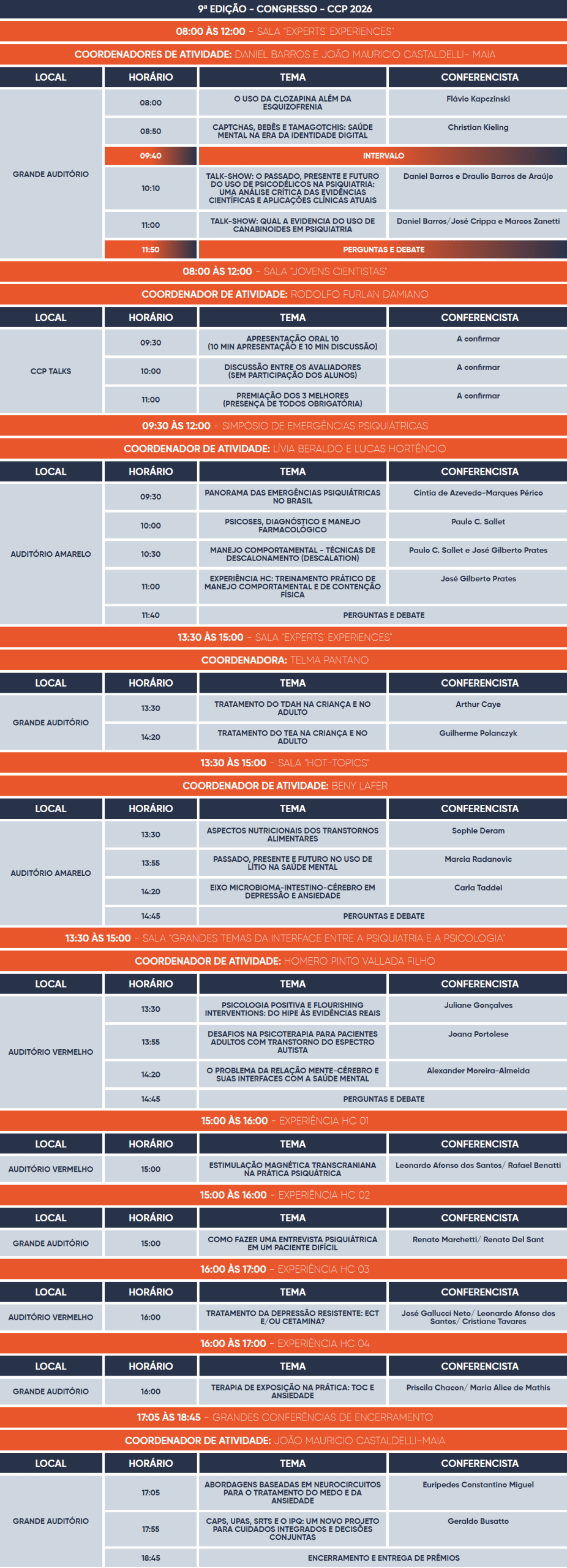 Palestrantes Especialistas confirmados